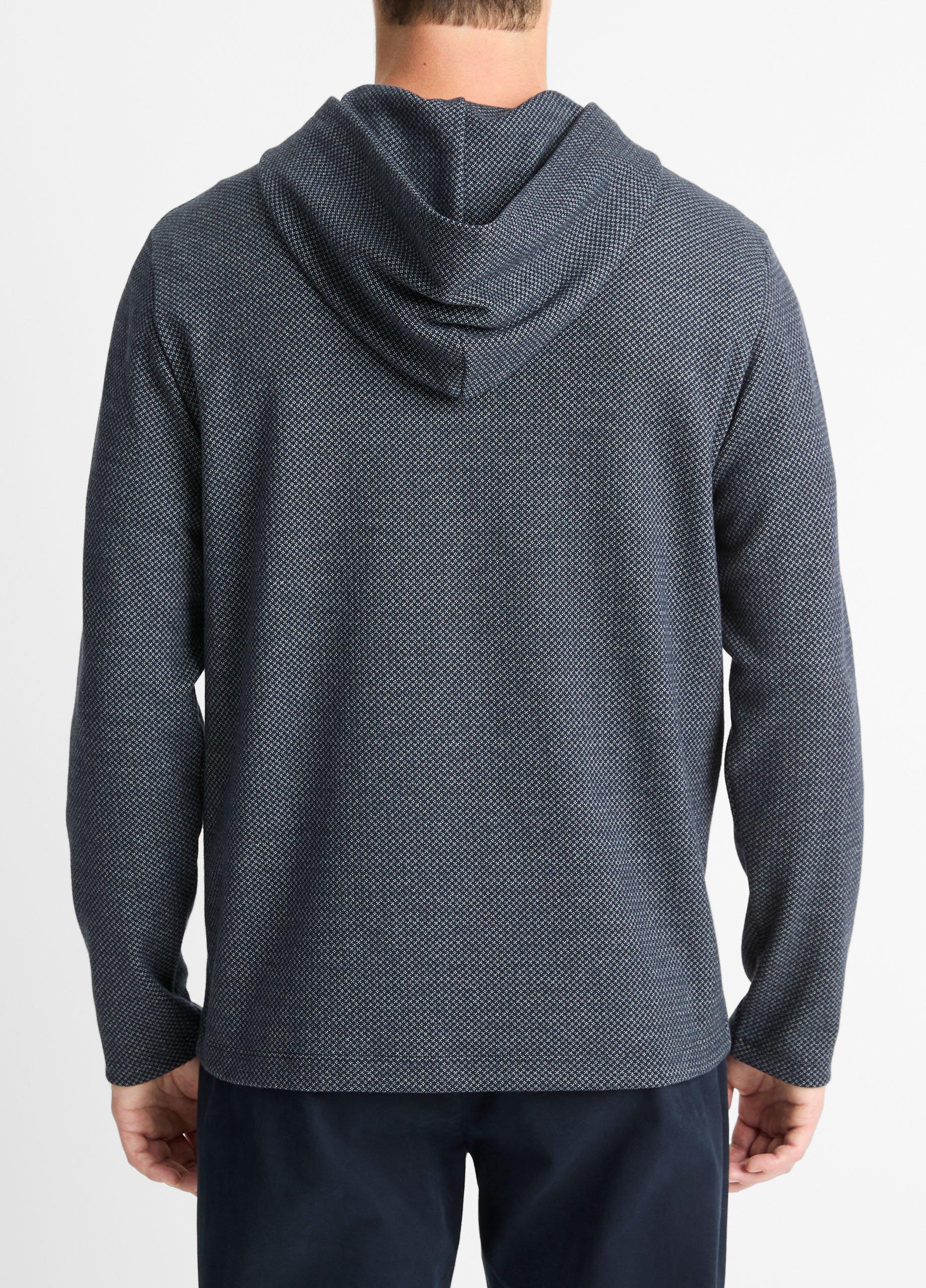 Vince. Men s Birdseye Zip Up Lined Cotton Hoodie in Charcoal Leche Black White Sweaters Very well made.