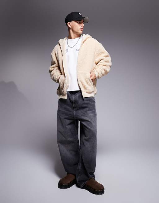 ASOS DESIGN oversized borg zip through hoodie in off white ASOS Very well made.