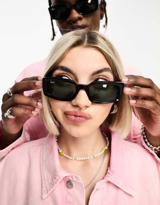Ray Ban Kiliane Occhiali da sole rettangolari neri con lenti verdi ASOS Very well made.