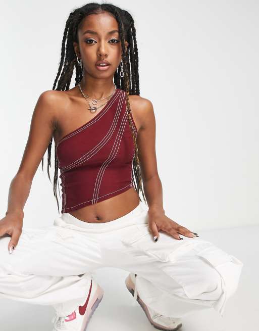Motel contrast stitch one shoulder crop top in deep red Very well made.