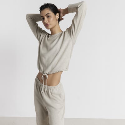 Beige Button Shoulder Top Jogger Set River Island Very well made.