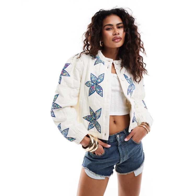 Free People quinn quilted patch insert denim jacket in off white ASOS Very well made.