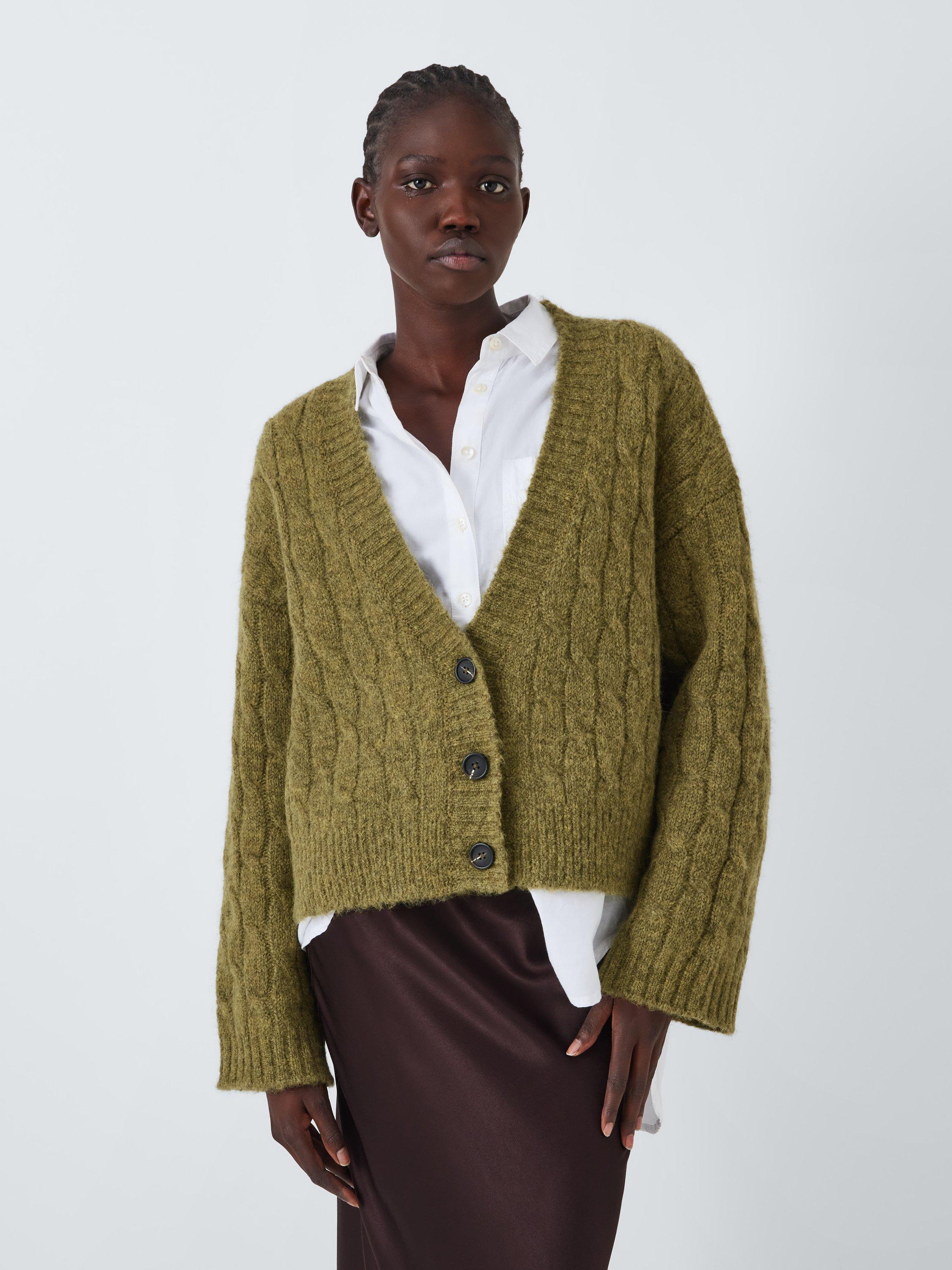 AND OR Faye Cable Knit Wool Blend Cardigan Olive Very well made.