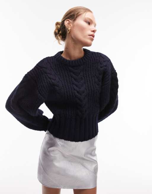 Topshop knitted premium cable ovoid sleeve jumper in navy ASOS Very well made.