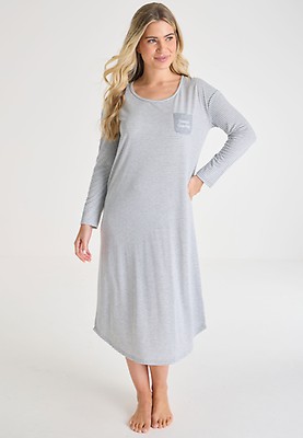 Womens Grey White Stripe Long Sleeve Nightdress Peacocks Very well made.