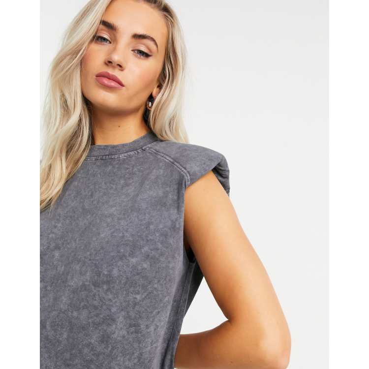 ASOS DESIGN t shirt with padded shoulder in washed charcoal Very well made.