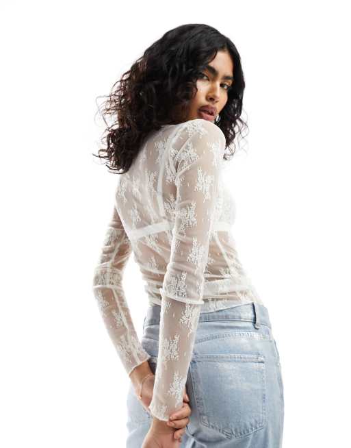 Abercrombie Fitch lace long sleeve top in off white Very well made.