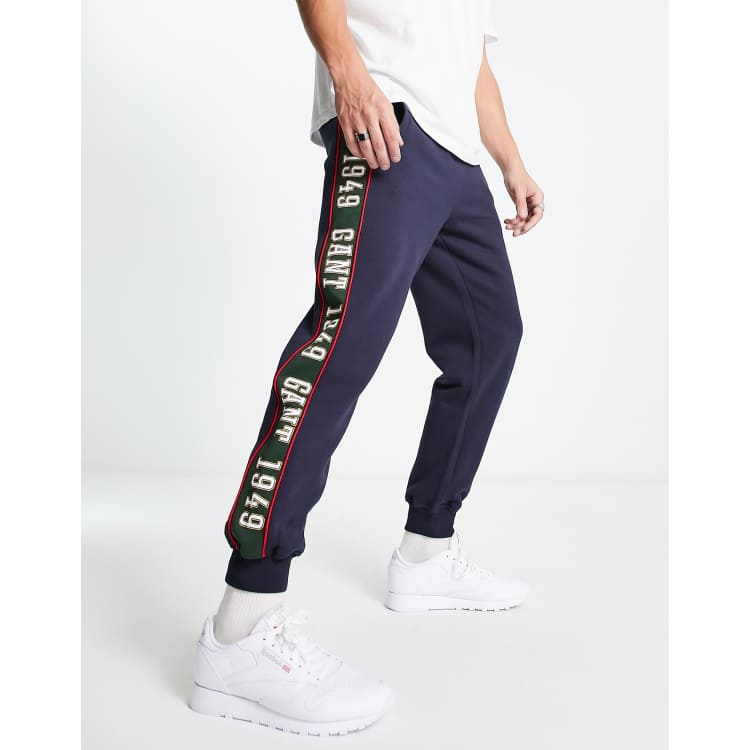 GANT side logo taping cuffed sweat joggers in navy Very well made.