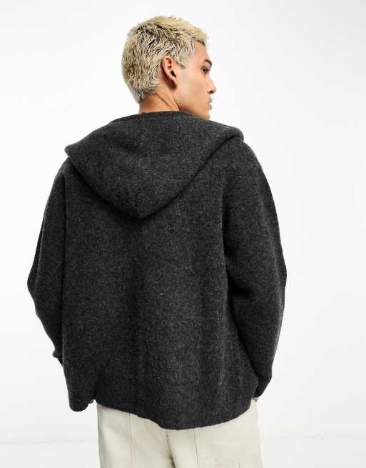 Weekday Logan oversized zip through cardigan with hood in dark gray ASOS Very well made.