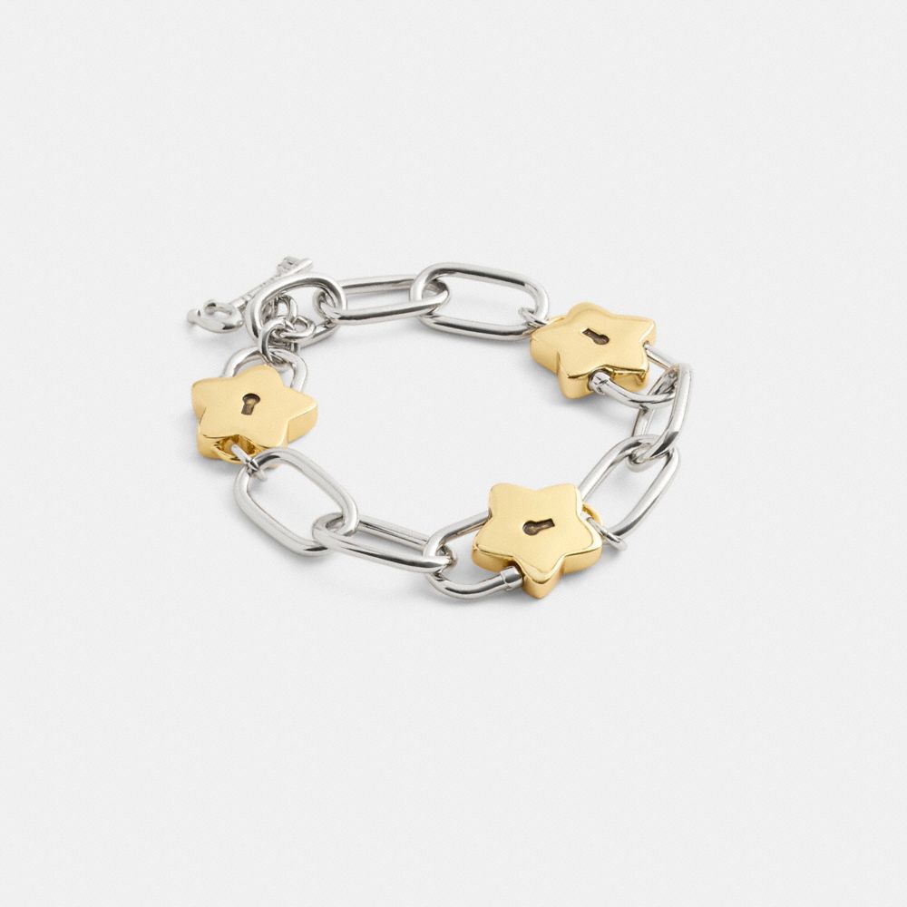 Gold Silver Star Padlock Chain Link Bracelet Very well made.
