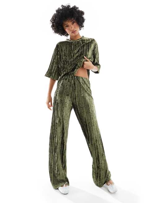 Mango Pantaloni in velluto plisse verdi in coordinato ASOS Very well made.