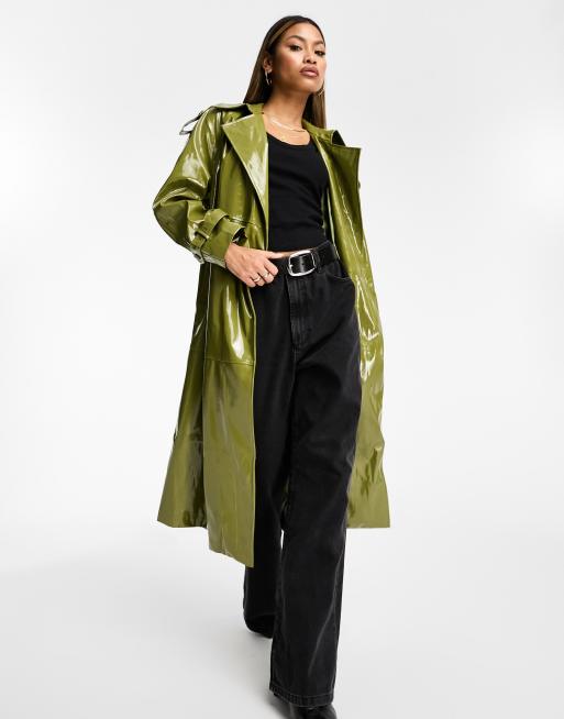 Jayley faux leather oversized trenchcoat in green patent ASOS Very well made.
