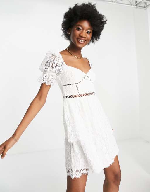 Bardot Robe courte en dentelle avec manches transparentes Ivoire Very well made.