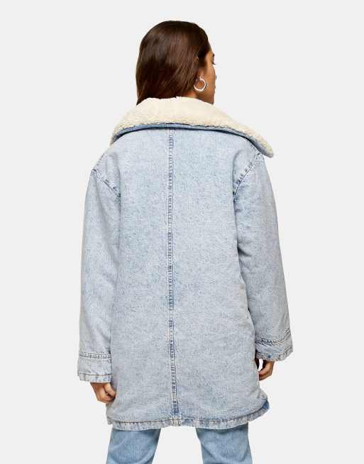 Topshop Petite borg collar longline denim jacket in acid blue wash Very well made.