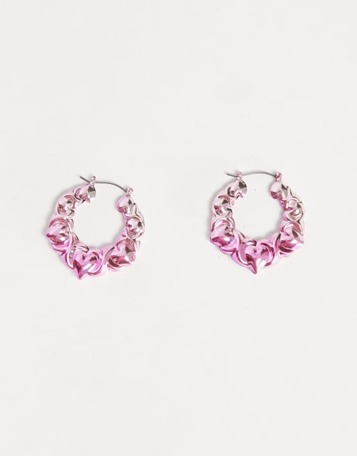 ASOS DESIGN hoop earrings in heart anodised design in pink Very well made.