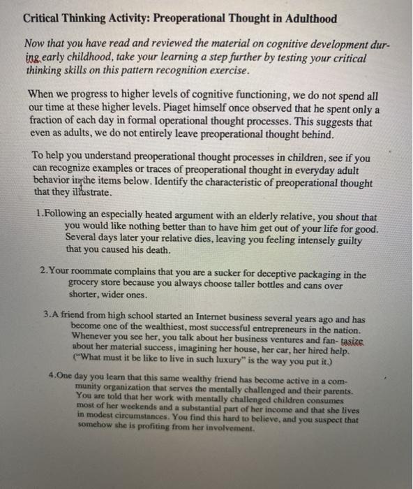 Solved Critical Thinking Activity Preoperational Thought in Chegg Very well made.