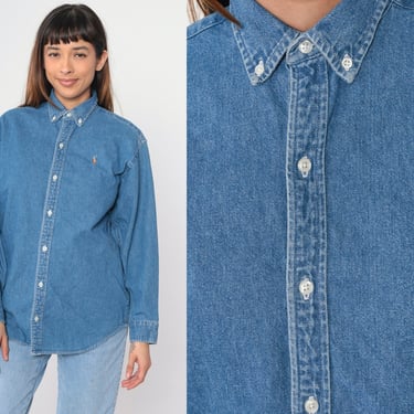 Polo Ralph Lauren Jean Shirt 90s Blue Denim Button Up Shop Exile Tucson AZ Very well made.