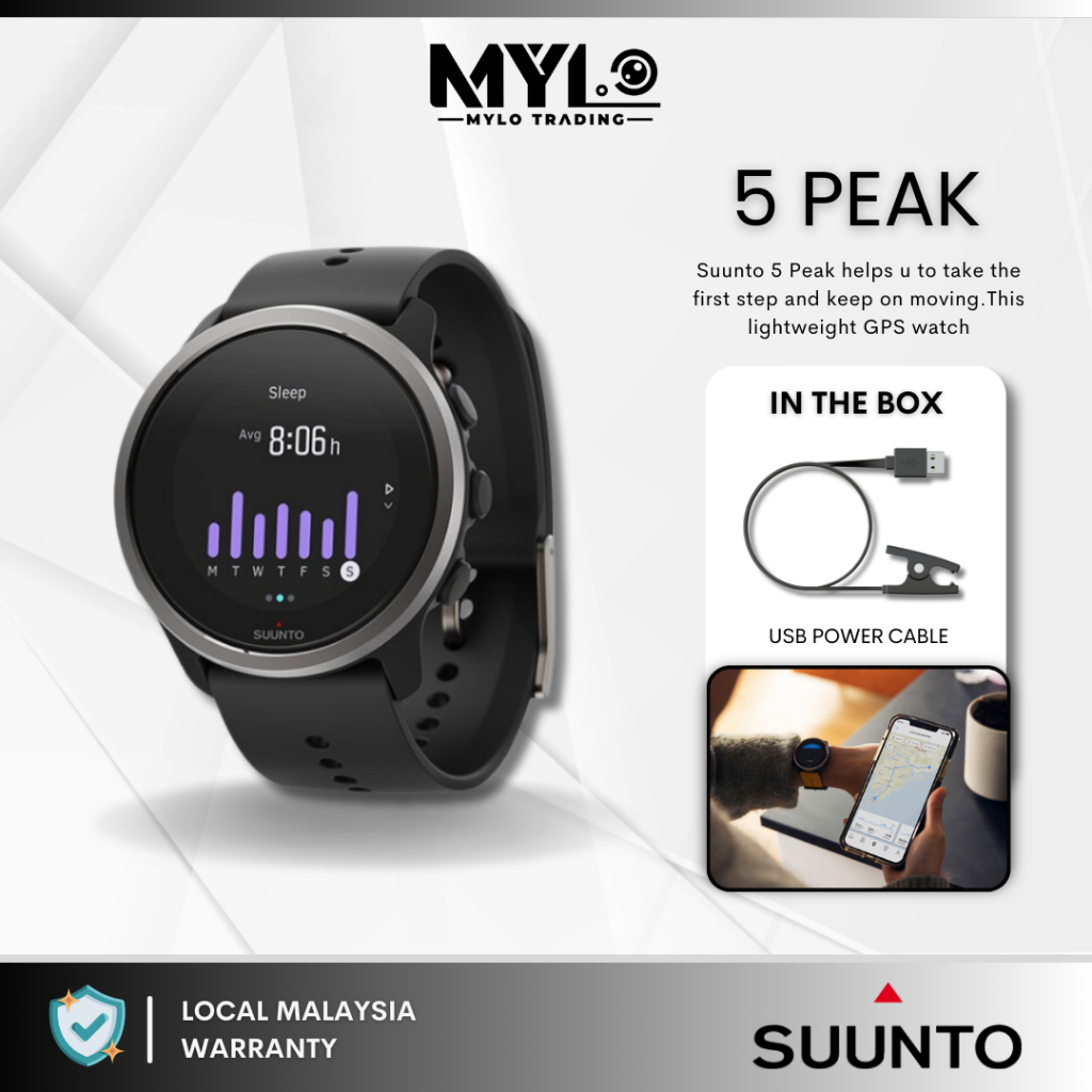 READY STOCK SUUNTO 5 Peak Compact GPS Sports Watch With Long Battery Life Route Navigation Very well made.