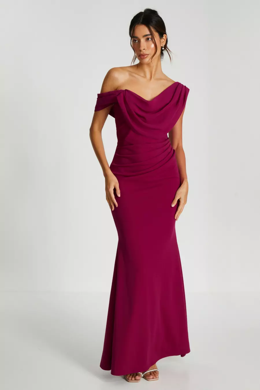 Dark Red Asymmetric Cowl Neck Maxi Dress QUIZ Clothing Very well made.