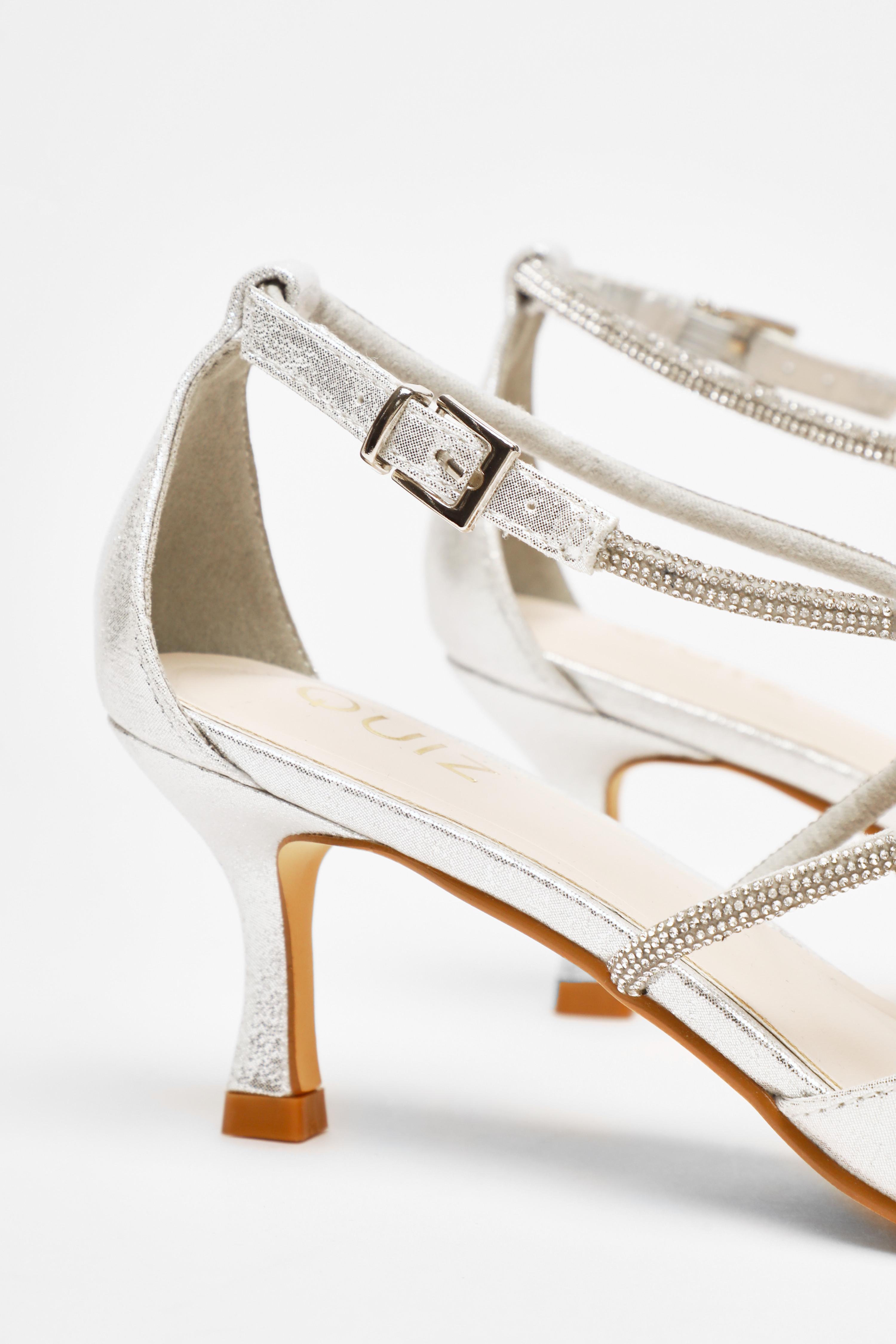 Quiz Silver Diamante Strap Heeled Sandals Very well made.