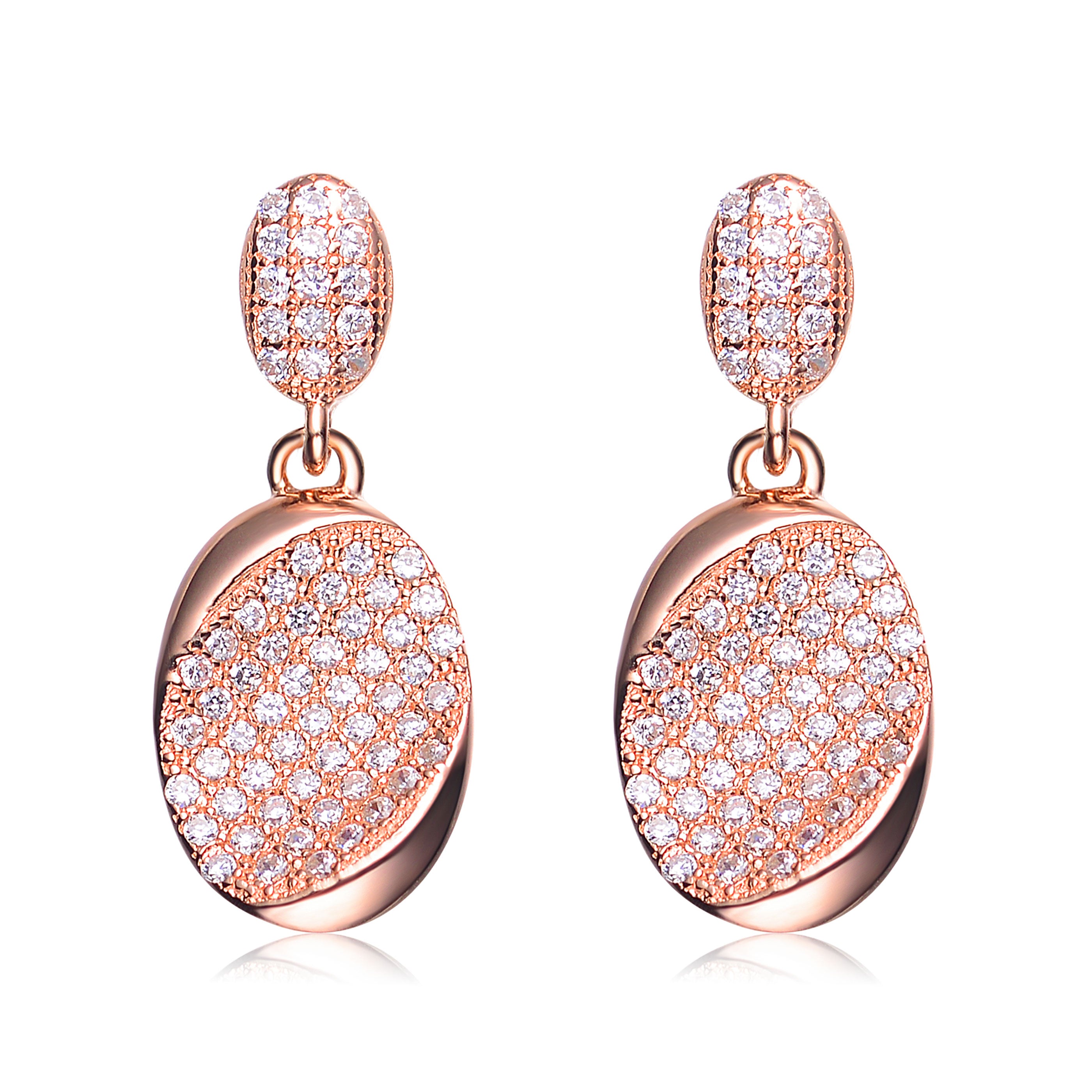 18K Rose Gold Overlay Pave Cubic Zirconia Dangle Earrings Genevive Jewelry Wolf Badger Very well made.
