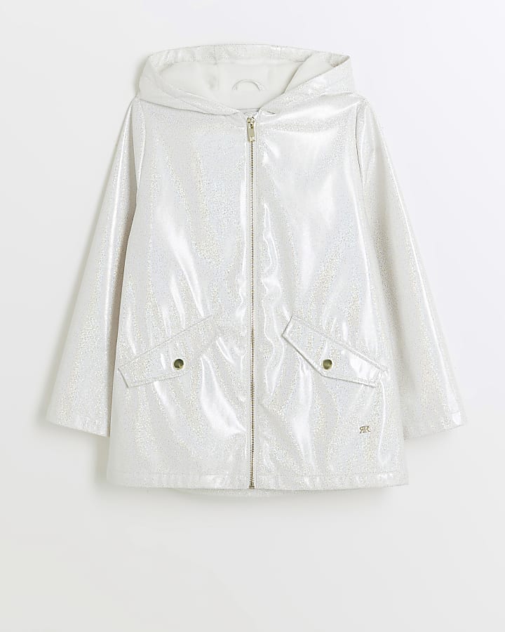 Girls white glitter hooded rain coat River Island Very well made.