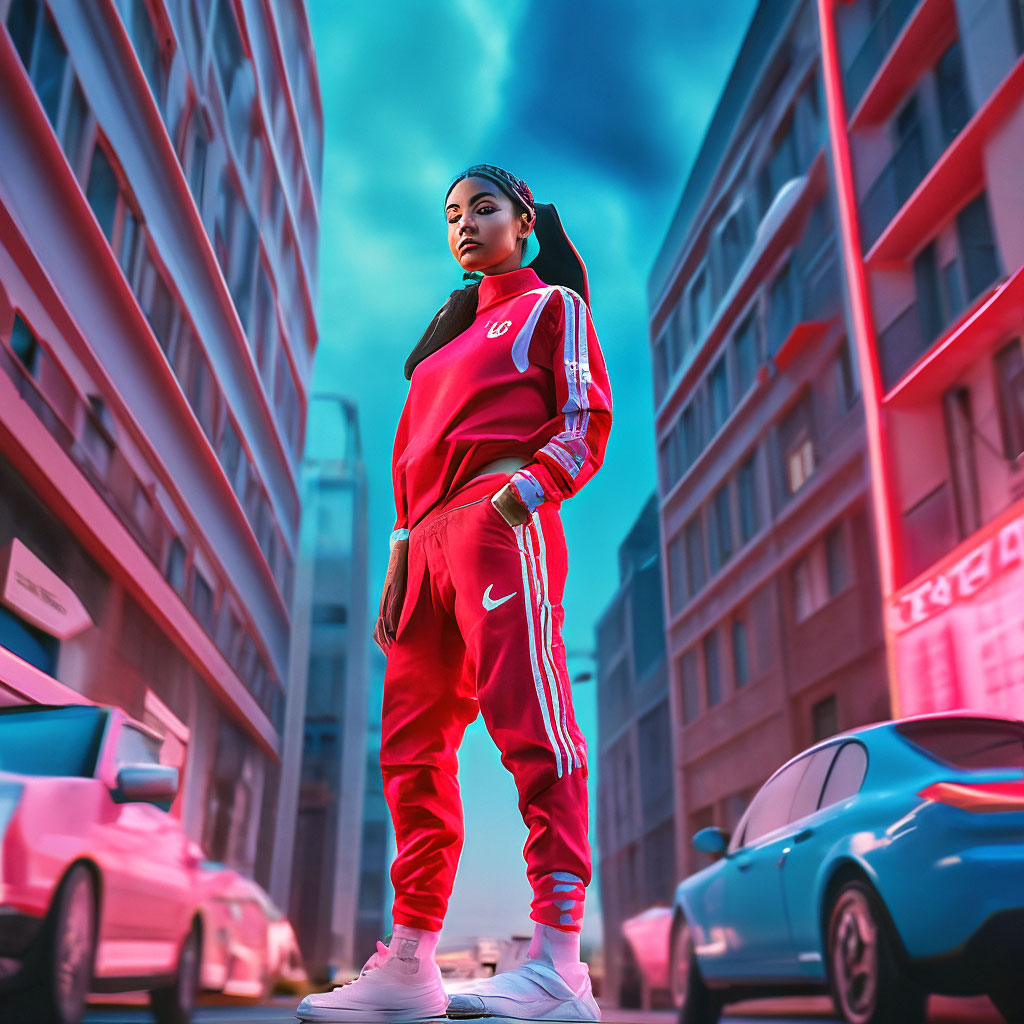 A girl in a red Adidas tracksuit with image created in Shedevrum Very well made.