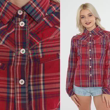 Western Blouse 90s Red Plaid Button up Shirt Rodeo Top Shop Exile Tucson AZ Very well made.