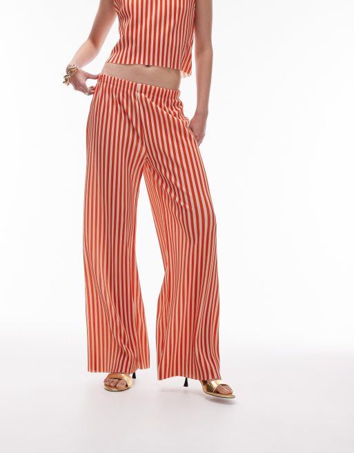 Topshop co ord stripe plisse wide leg trouser in red Very well made.