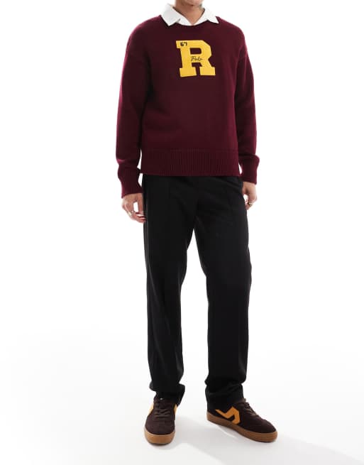 Polo Ralph Lauren retro sports collegiate cotton knit jumper in burgundy Very well made.