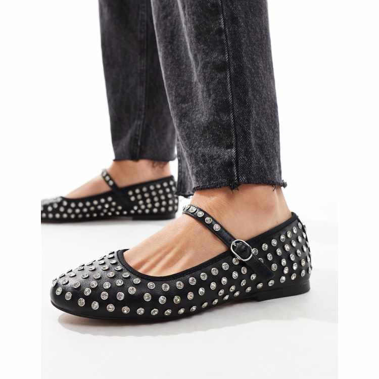 Steve Madden Vinetta R rhinestone ballet flats with strap in black Very well made.