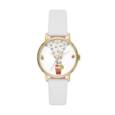 Ladies Kate Spade Holland Gold Tone White Leather Strap Watch with Crystal Accent Textured White Dial Model KSW1790 Zales Very well made.