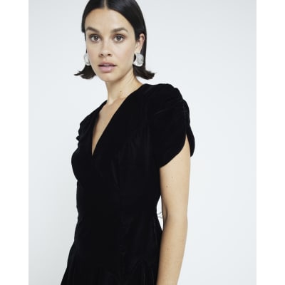 Black velvet v neck mini dress River Island Very well made.