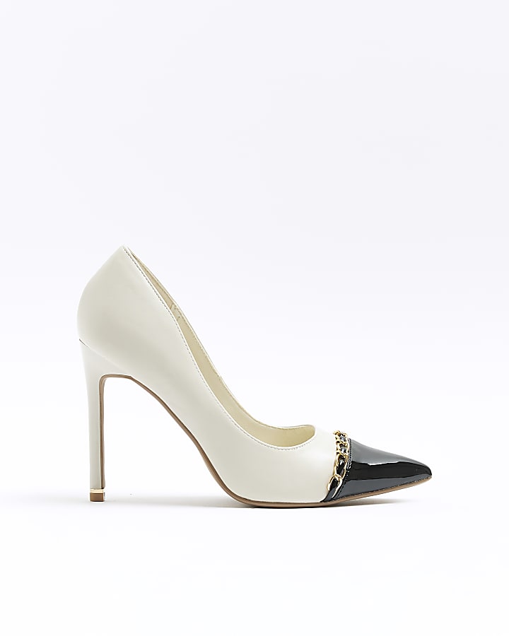 Beige monogram sling back heeled court shoes River Island Very well made.