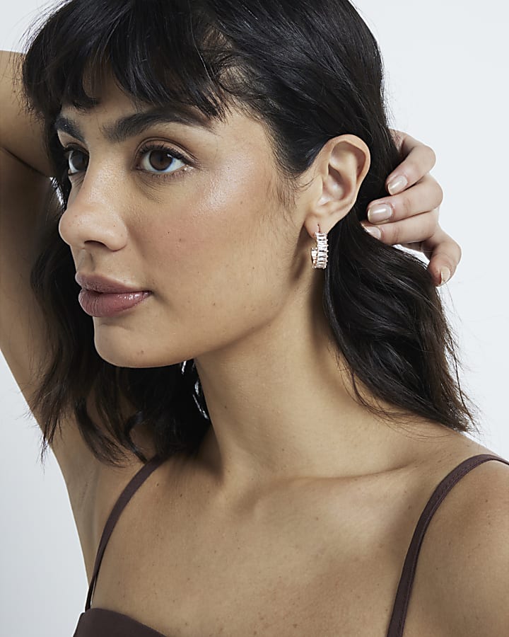 Rose Gold Hoop Cubic Zirconia Earrings River Island Very well made.