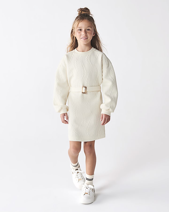 Girls cream jacquard sweatshirt jumper dress River Island Very well made.