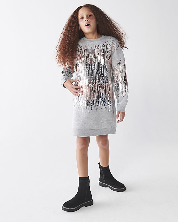 Girls grey sequin sweatshirt jumper dress River Island Very well made.