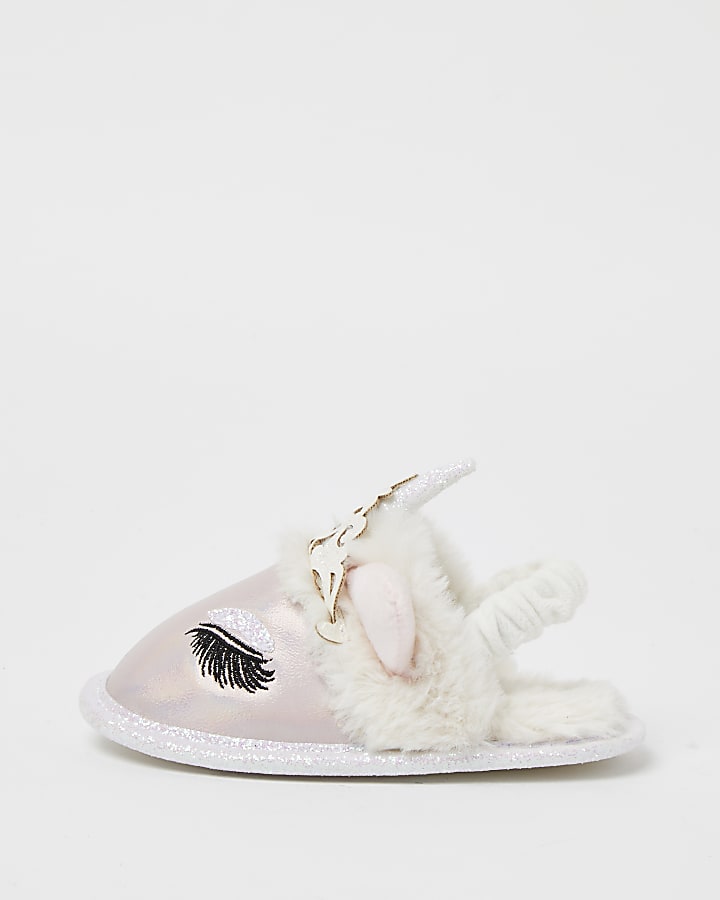 Mini girls pink unicorn slippers River Island Very well made.