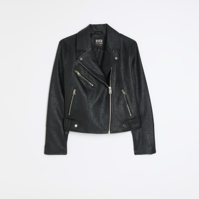 Black faux leather biker jacket River Island Very well made.