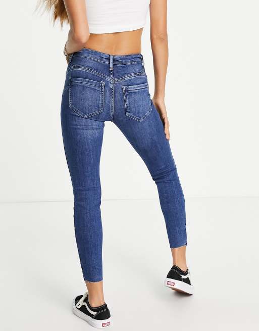 River Island Petite ripped raw hem high rise skinny jeans in mid auth blue Very well made.