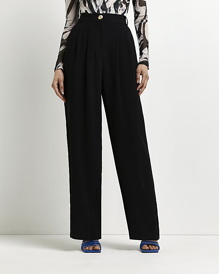 Black wide leg pleated trousers River Island Very well made.