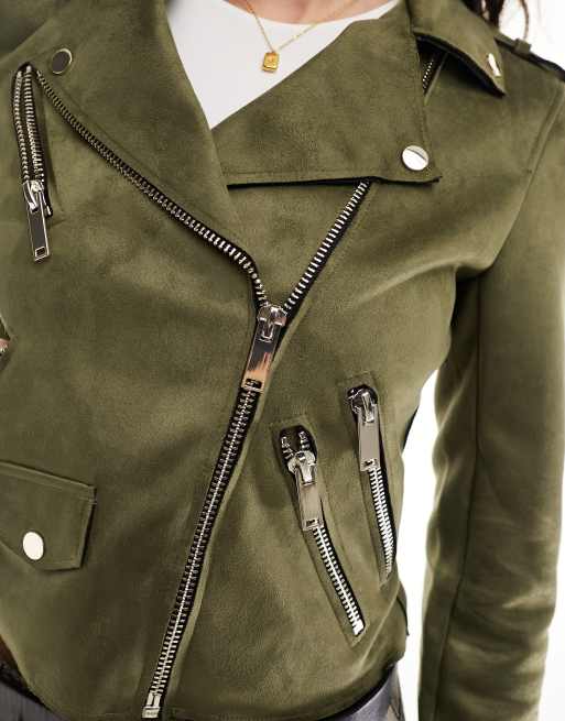 River Island Suedette crop biker jacket in khaki ASOS Very well made.