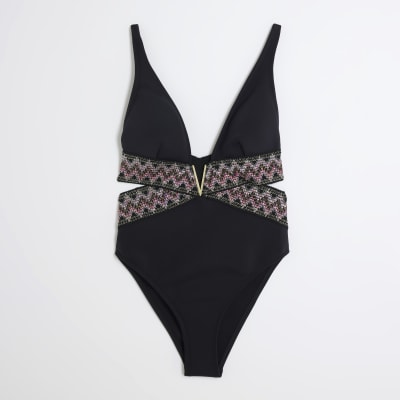 Black zig zag elastic plunge swimsuit River Island Very well made.