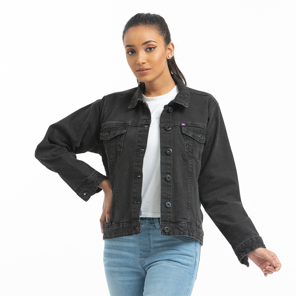 Black Cropped Acid Washed Denim Jacket Very well made.
