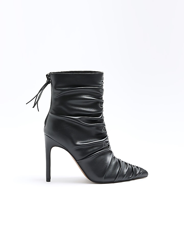 Black ruched heeled ankle boots River Island Very well made.