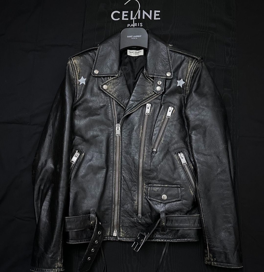 Saint Laurent Star Painted Distressed Leather Moto Jacket Black Very well made.