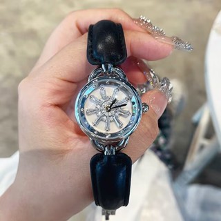 Fashion Sparkling Crystals Silver Rotating Dial Quartz Watch for Women with Black Leather Strap Shopee Singapore Very well made.