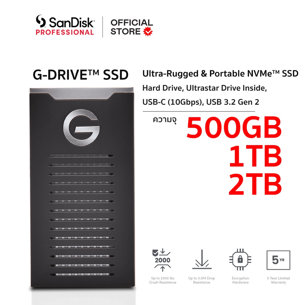 SanDisk Professional G DRIVE SSD 500GB 1TB 2TB USB 3.2 External SSD NVMe SDPS11A TypeC 10Gbps 5 Shopee Thailand Very well made.
