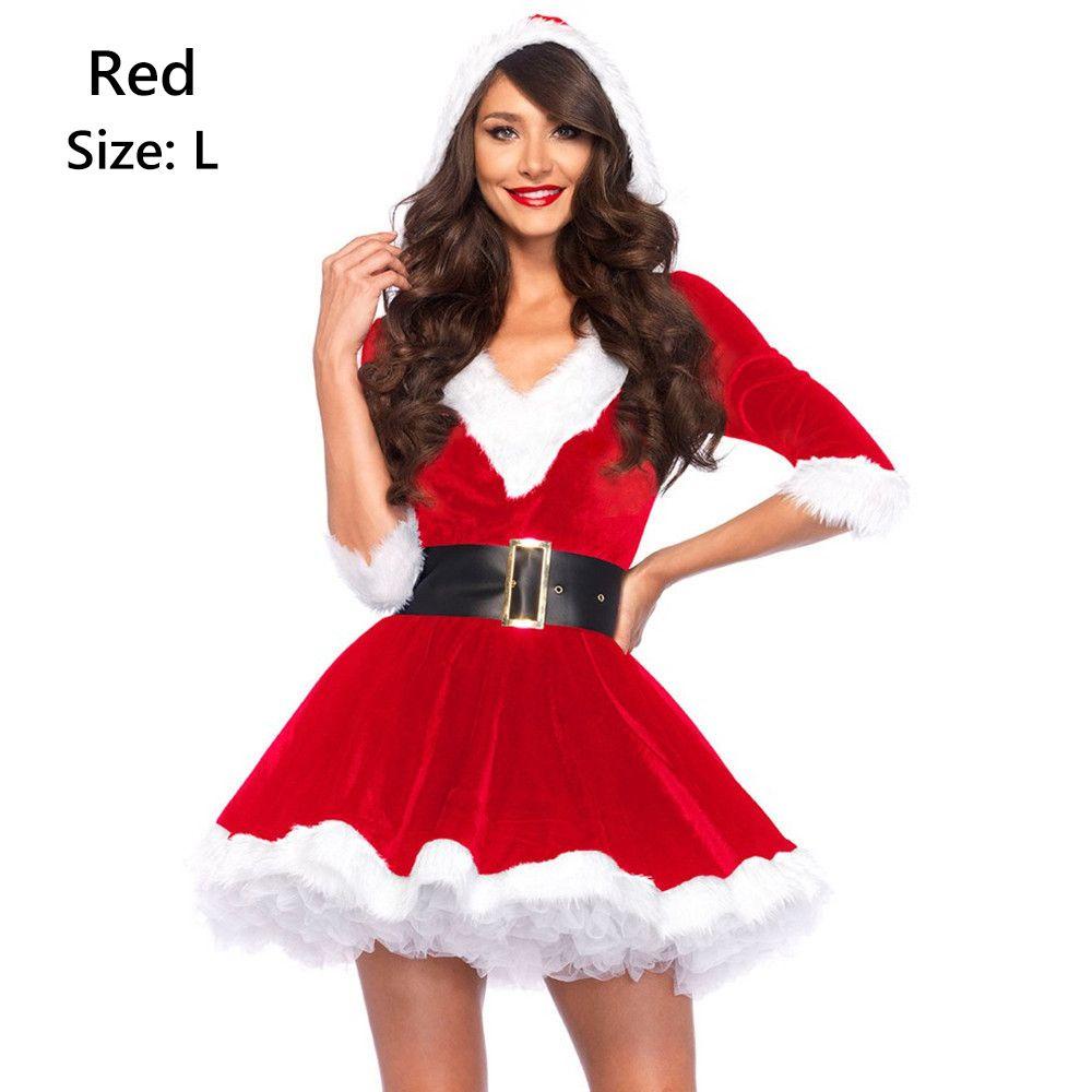 Women s Christmas Santa Costume Mini Dress Plush Trim Long Sleeve Mini Hooded Dress Cosplay Clothes Female Slim Fit Wrap Bodycon Lazada Very well made.