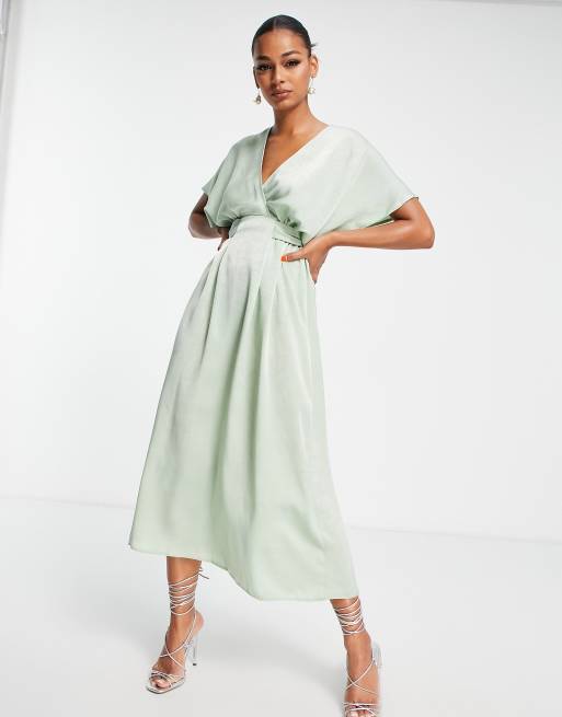 Flounce London satin kimono sleeve midi dress in sage satin Very well made.